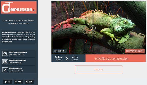 Compressor.io es una herramienta online que permite optimizar el peso de una fotografía o cualquier otra imagen de la que se desee mantener una alta calidad pero en un archivo con menor cantidad de kilobytes. Funciona con formatos JPEG, PNG, GIF y SVG, cuenta con dos tipos de compresión y los resultados pueden ser descargados al ordenador.