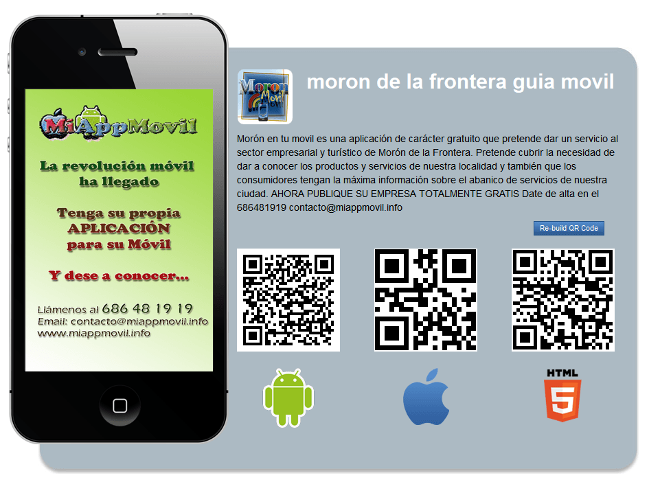 Aqui os dejamos un ejemplo de funcionamiento de una aplicación móvil, en este caso es la guia comercial y turística de Morón de la Frontera, actualmente en lanzamiento.